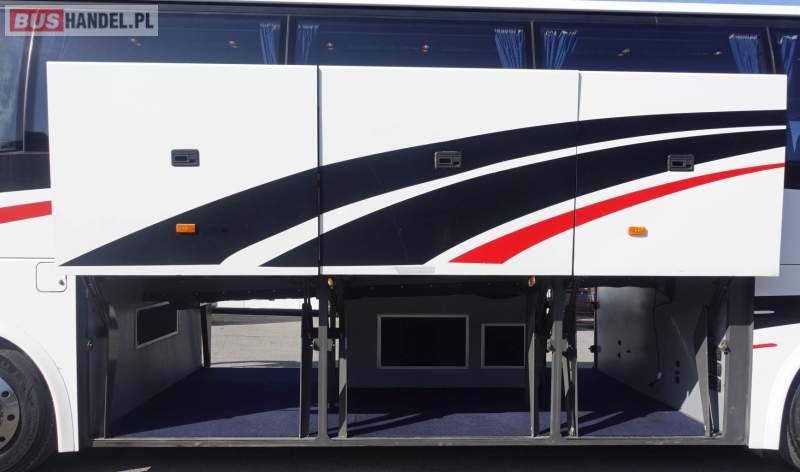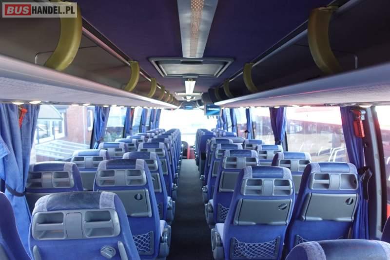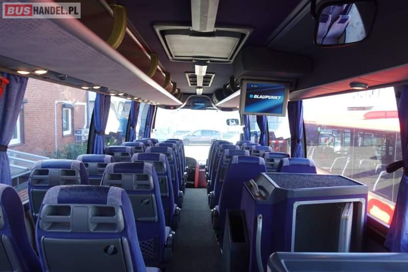 Wyposażenie: video, WC, lodówka, fotele odchylane, oświetlenie indywidualne, nawiewy dyszowe, siateczki, ABS, ASR, retarder, CD, podnóżki, stoliczki, mikrofon, klimatyzacja, radio, regulacja wysokości nadwozia, centralny zamek, podwójne szyby boczne, wspomaganie kierownicy, elektryczne lusterka, fotele odchylane i rozsuwane, DVD, ogrzewanie stacjonarne, ESP