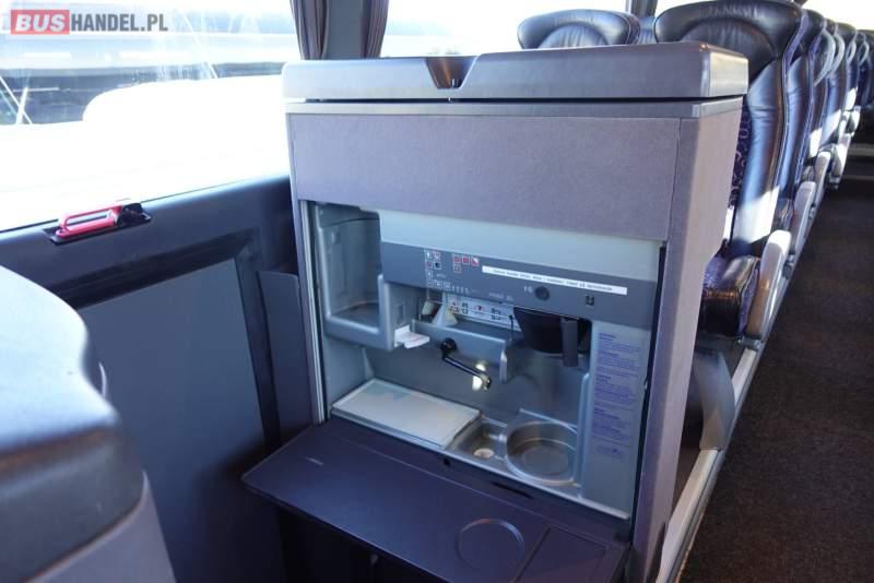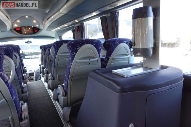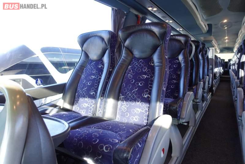 Ausstattung: Video, WC, Kühlschrank, Küche, Schlafkabine, Sitze rückwärts verstellbar, Leselampen, Düsenbelüftung, Gepäckablagen, ABS, ASR, Tempomat, Retarder, Telefon, CD, Fußrasten, Tische, Mikrofon, Klimaanlage, Radio, Hebe-Senk-Anlage, Zentralverriegelung, Doppelverglasung, Servolenkung, elektrische Spiegel, Schlafsitze, DVD, Standheizung, Anhängerkupplung, ESP