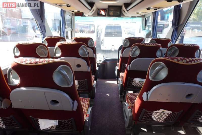 Wyposażenie: klimatyzacja, video, WC, lodówka, kabina sypialna, oświetlenie indywidualne, nawiewy dyszowe, fotele odchylane, podnóżki, stoliczki, siateczki, ABS, ASR, tempomat, retarder, CD, mikrofon, radio, fotele odchylane i rozsuwane, regulacja wysokości nadwozia, centralny zamek, podwójne szyby boczne, wspomaganie kierownicy, elektryczne lusterka, ogrzewanie stacjonarne, DVD, ESP