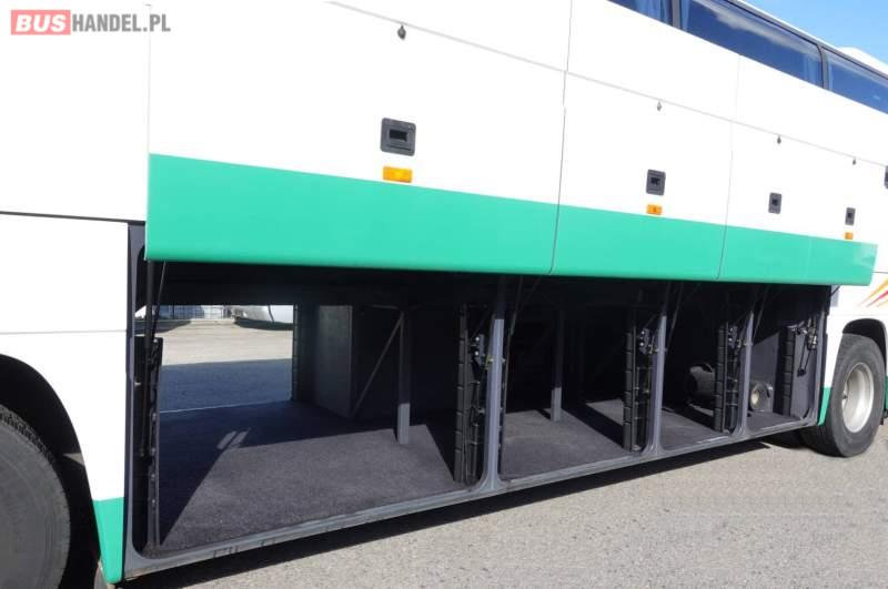 Wyposażenie: klimatyzacja, video, WC, lodówka, kabina sypialna, oświetlenie indywidualne, nawiewy dyszowe, fotele odchylane, podnóżki, stoliczki, siateczki, ABS, ASR, tempomat, retarder, CD, mikrofon, radio, fotele odchylane i rozsuwane, regulacja wysokości nadwozia, centralny zamek, podwójne szyby boczne, wspomaganie kierownicy, elektryczne lusterka, ogrzewanie stacjonarne, DVD, ESP
