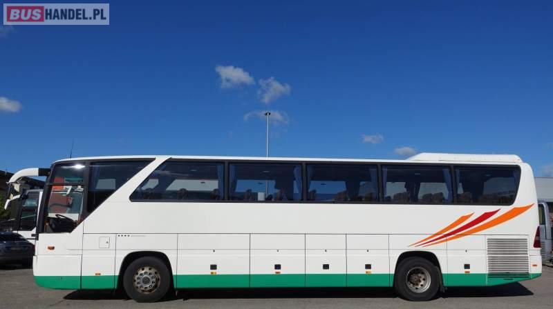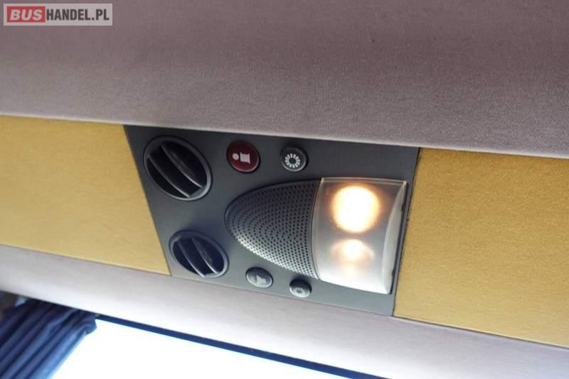 Wyposażenie: klimatyzacja, video, WC, lodówka, kabina sypialna, oświetlenie indywidualne, nawiewy dyszowe, fotele odchylane, podnóżki, stoliczki, siateczki, ABS, ASR, tempomat, retarder, CD, mikrofon, radio, fotele odchylane i rozsuwane, regulacja wysokości nadwozia, centralny zamek, podwójne szyby boczne, wspomaganie kierownicy, elektryczne lusterka, ogrzewanie stacjonarne, DVD, ESP
