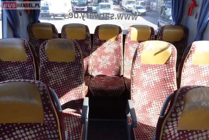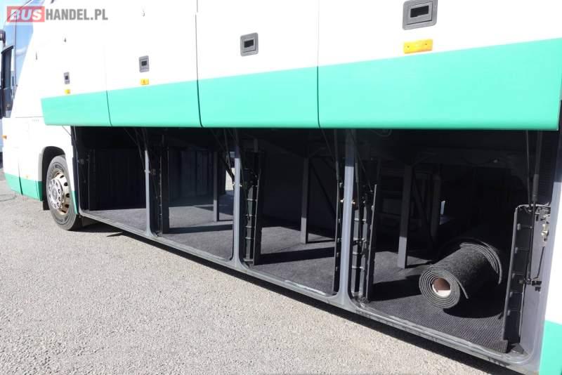 Wyposażenie: klimatyzacja, video, WC, lodówka, kabina sypialna, oświetlenie indywidualne, nawiewy dyszowe, fotele odchylane, podnóżki, stoliczki, siateczki, ABS, ASR, tempomat, retarder, CD, mikrofon, radio, fotele odchylane i rozsuwane, regulacja wysokości nadwozia, centralny zamek, podwójne szyby boczne, wspomaganie kierownicy, elektryczne lusterka, ogrzewanie stacjonarne, DVD, ESP