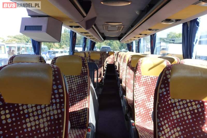 Wyposażenie: klimatyzacja, video, WC, lodówka, kabina sypialna, oświetlenie indywidualne, nawiewy dyszowe, fotele odchylane, podnóżki, stoliczki, siateczki, ABS, ASR, tempomat, retarder, CD, mikrofon, radio, fotele odchylane i rozsuwane, regulacja wysokości nadwozia, centralny zamek, podwójne szyby boczne, wspomaganie kierownicy, elektryczne lusterka, ogrzewanie stacjonarne, DVD, ESP