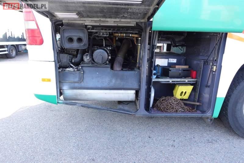 Wyposażenie: klimatyzacja, video, WC, lodówka, kabina sypialna, oświetlenie indywidualne, nawiewy dyszowe, fotele odchylane, podnóżki, stoliczki, siateczki, ABS, ASR, tempomat, retarder, CD, mikrofon, radio, fotele odchylane i rozsuwane, regulacja wysokości nadwozia, centralny zamek, podwójne szyby boczne, wspomaganie kierownicy, elektryczne lusterka, ogrzewanie stacjonarne, DVD, ESP