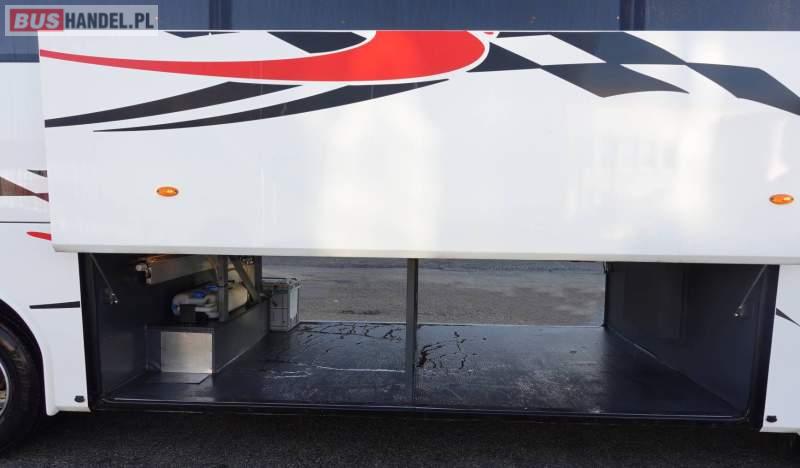 Wyposażenie: video, WC, fotele odchylane, oświetlenie indywidualne, nawiewy dyszowe, siateczki, ABS, ASR, retarder, CD, podnóżki, stoliczki, klimatyzacja, regulacja wysokości nadwozia, centralny zamek, podwójne szyby boczne, wspomaganie kierownicy, elektryczne lusterka, fotele odchylane i rozsuwane, DVD, ogrzewanie stacjonarne, ESP
