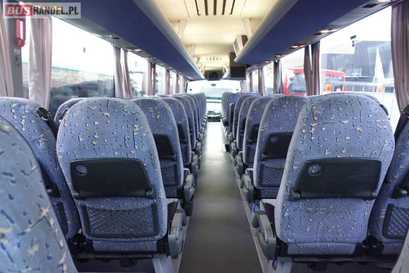 Wyposażenie: video, WC, lodówka, caffebar, kabina sypialna, fotele odchylane, oświetlenie indywidualne, nawiewy dyszowe, siateczki, ABS, ASR, tempomat, retarder, nawigacja, CD, podnóżki, stoliczki, mikrofon, klimatyzacja, regulacja wysokości nadwozia, centralny zamek, podwójne szyby boczne, wspomaganie kierownicy, elektryczne lusterka, fotele odchylane i rozsuwane, DVD, ogrzewanie stacjonarne, ESP