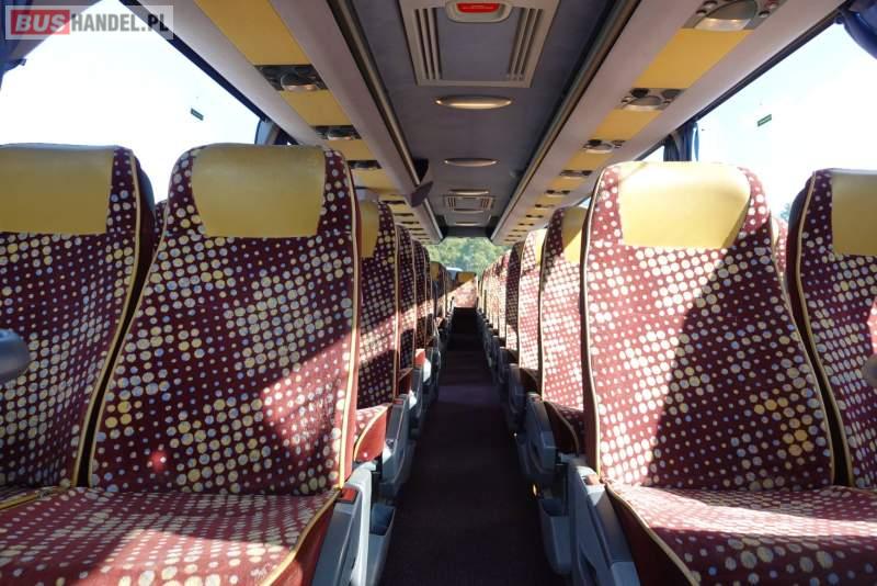 Wyposażenie: klimatyzacja, video, WC, lodówka, kabina sypialna, oświetlenie indywidualne, nawiewy dyszowe, fotele odchylane, podnóżki, stoliczki, siateczki, ABS, ASR, tempomat, retarder, CD, mikrofon, radio, fotele odchylane i rozsuwane, regulacja wysokości nadwozia, centralny zamek, podwójne szyby boczne, wspomaganie kierownicy, elektryczne lusterka, ogrzewanie stacjonarne, DVD, ESP