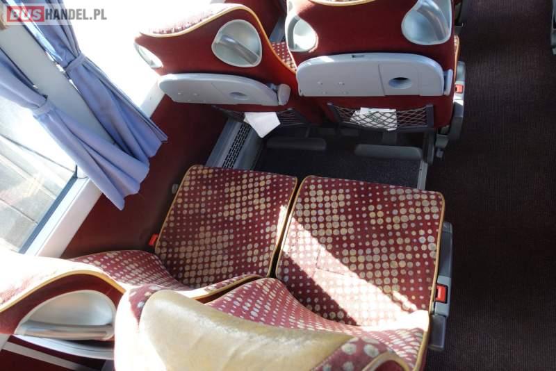 Wyposażenie: klimatyzacja, video, WC, lodówka, kabina sypialna, oświetlenie indywidualne, nawiewy dyszowe, fotele odchylane, podnóżki, stoliczki, siateczki, ABS, ASR, tempomat, retarder, CD, mikrofon, radio, fotele odchylane i rozsuwane, regulacja wysokości nadwozia, centralny zamek, podwójne szyby boczne, wspomaganie kierownicy, elektryczne lusterka, ogrzewanie stacjonarne, DVD, ESP