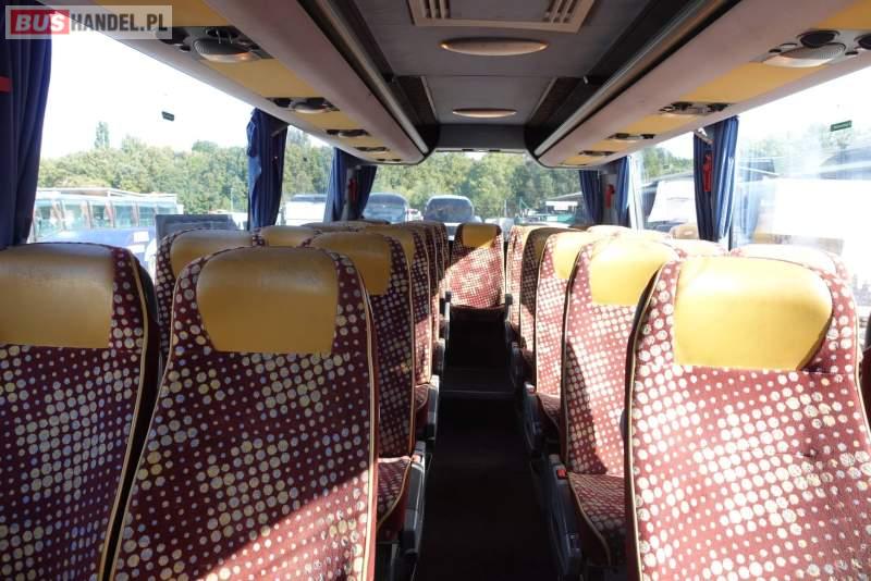 Wyposażenie: klimatyzacja, video, WC, lodówka, kabina sypialna, oświetlenie indywidualne, nawiewy dyszowe, fotele odchylane, podnóżki, stoliczki, siateczki, ABS, ASR, tempomat, retarder, CD, mikrofon, radio, fotele odchylane i rozsuwane, regulacja wysokości nadwozia, centralny zamek, podwójne szyby boczne, wspomaganie kierownicy, elektryczne lusterka, ogrzewanie stacjonarne, DVD, ESP