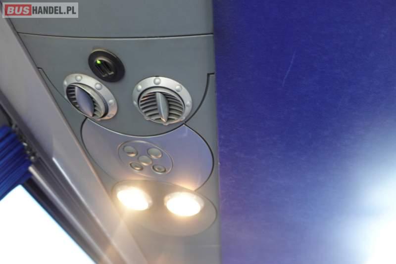 Wyposażenie: video, WC, fotele odchylane, oświetlenie indywidualne, nawiewy dyszowe, siateczki, ABS, ASR, retarder, CD, podnóżki, stoliczki, klimatyzacja, regulacja wysokości nadwozia, centralny zamek, podwójne szyby boczne, wspomaganie kierownicy, elektryczne lusterka, fotele odchylane i rozsuwane, DVD, ogrzewanie stacjonarne, ESP