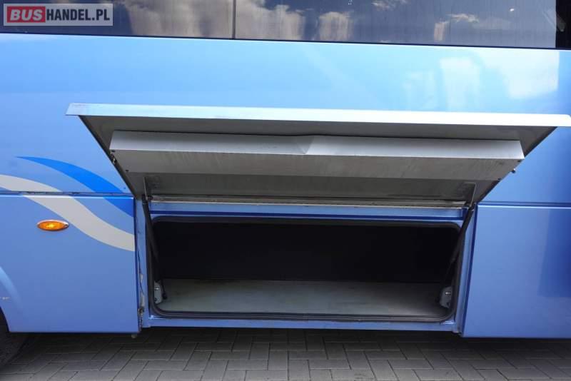 Wyposażenie: video, fotele odchylane, oświetlenie indywidualne, nawiewy dyszowe, siateczki, ABS, ASR, tempomat, retarder, CD, mikrofon, klimatyzacja, radio, regulacja wysokości nadwozia, centralny zamek, podwójne szyby boczne, wspomaganie kierownicy, elektryczne lusterka, fotele odchylane i rozsuwane, DVD, ogrzewanie stacjonarne, ESP