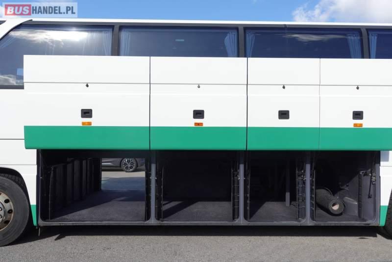 Wyposażenie: klimatyzacja, video, WC, lodówka, kabina sypialna, oświetlenie indywidualne, nawiewy dyszowe, fotele odchylane, podnóżki, stoliczki, siateczki, ABS, ASR, tempomat, retarder, CD, mikrofon, radio, fotele odchylane i rozsuwane, regulacja wysokości nadwozia, centralny zamek, podwójne szyby boczne, wspomaganie kierownicy, elektryczne lusterka, ogrzewanie stacjonarne, DVD, ESP