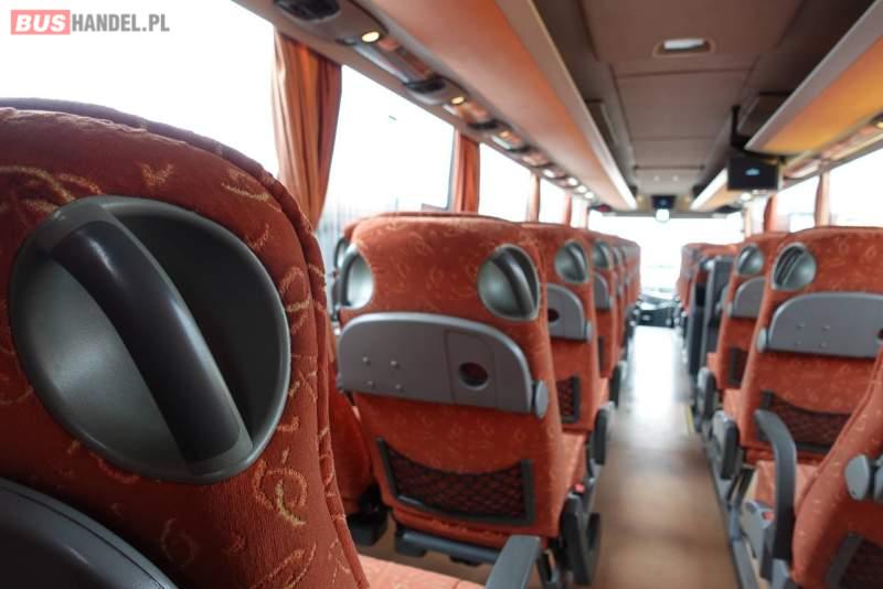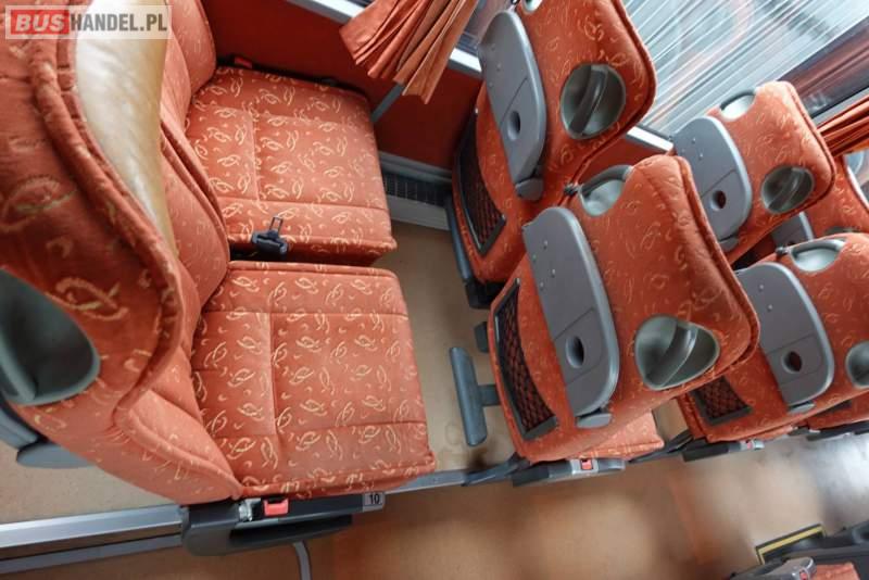 Wyposażenie: video, WC, lodówka, caffebar, kabina sypialna, fotele odchylane, oświetlenie indywidualne, nawiewy dyszowe, ABS, ASR, tempomat, retarder, CD, podnóżki, mikrofon, klimatyzacja, radio, centralny zamek, podwójne szyby boczne, wspomaganie kierownicy, elektryczne lusterka, fotele odchylane i rozsuwane, DVD, ogrzewanie stacjonarne, ESP
