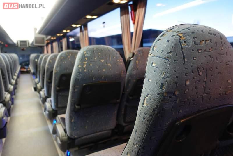 Wyposażenie: video, WC, lodówka, caffebar, kabina sypialna, fotele odchylane, oświetlenie indywidualne, nawiewy dyszowe, siateczki, ABS, ASR, tempomat, retarder, nawigacja, CD, podnóżki, stoliczki, mikrofon, klimatyzacja, regulacja wysokości nadwozia, centralny zamek, podwójne szyby boczne, wspomaganie kierownicy, elektryczne lusterka, fotele odchylane i rozsuwane, DVD, ogrzewanie stacjonarne, ESP
