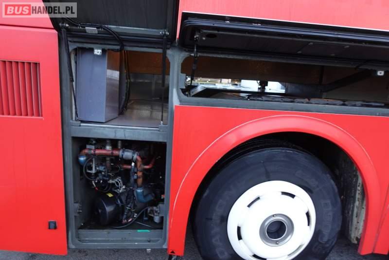 Wyposażenie: klimatyzacja, video, WC, lodówka, caffebar, kabina sypialna, oświetlenie indywidualne, nawiewy dyszowe, fotele odchylane, podnóżki, stoliczki, siateczki, ABS, ASR, tempomat, retarder, CD, mikrofon, fotele odchylane i rozsuwane, regulacja wysokości nadwozia, centralny zamek, podwójne szyby boczne, wspomaganie kierownicy, elektryczne lusterka, ogrzewanie stacjonarne, DVD