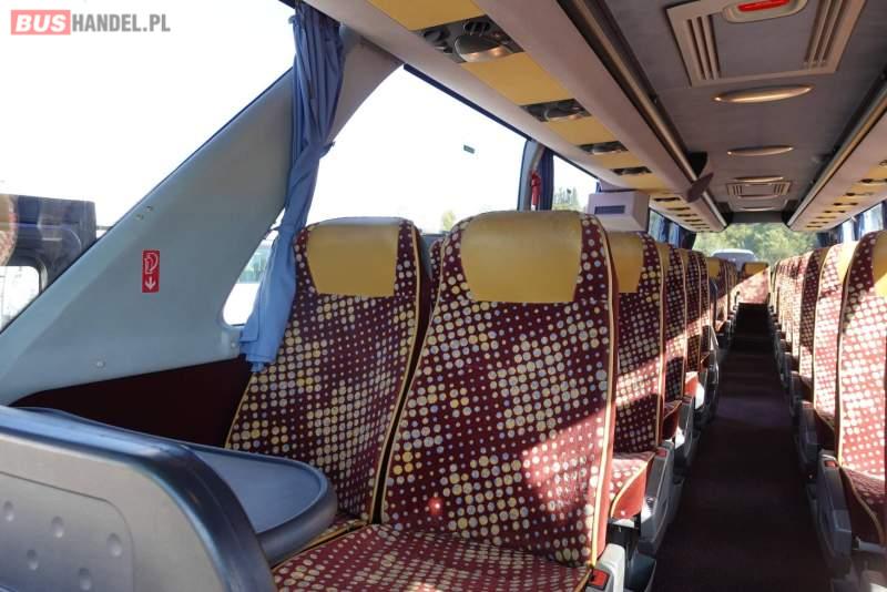Wyposażenie: klimatyzacja, video, WC, lodówka, kabina sypialna, oświetlenie indywidualne, nawiewy dyszowe, fotele odchylane, podnóżki, stoliczki, siateczki, ABS, ASR, tempomat, retarder, CD, mikrofon, radio, fotele odchylane i rozsuwane, regulacja wysokości nadwozia, centralny zamek, podwójne szyby boczne, wspomaganie kierownicy, elektryczne lusterka, ogrzewanie stacjonarne, DVD, ESP