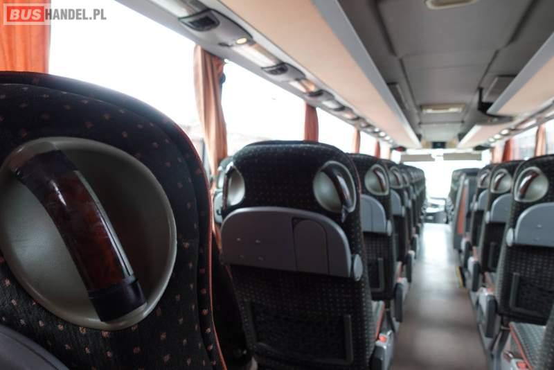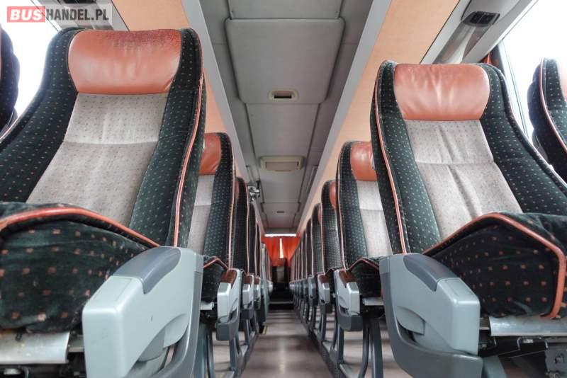Wyposażenie: video, WC, lodówka, caffebar, kabina sypialna, fotele odchylane, oświetlenie indywidualne, nawiewy dyszowe, siateczki, ABS, ASR, tempomat, retarder, CD, podnóżki, stoliczki, mikrofon, klimatyzacja, radio, centralny zamek, podwójne szyby boczne, wspomaganie kierownicy, elektryczne lusterka, fotele odchylane i rozsuwane, DVD, ogrzewanie stacjonarne, ESP