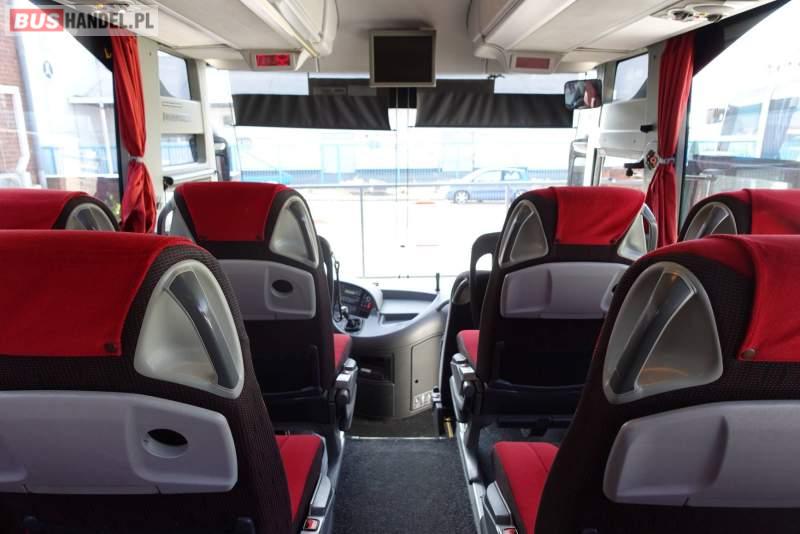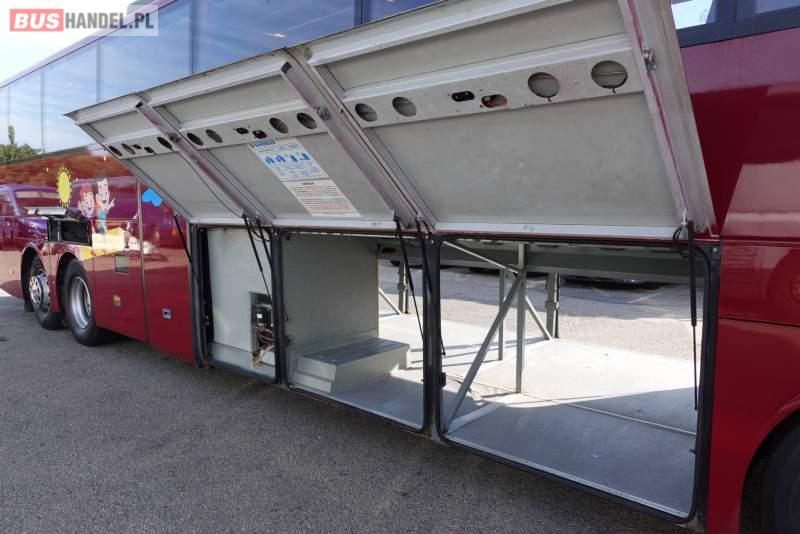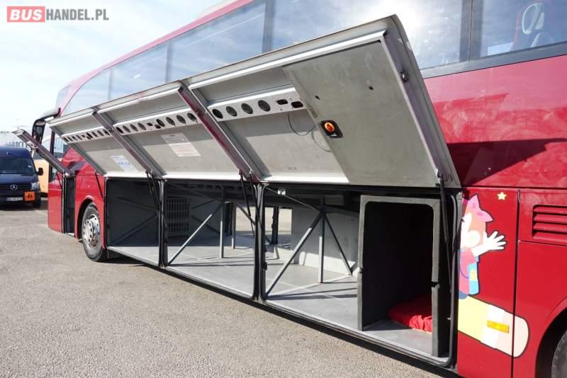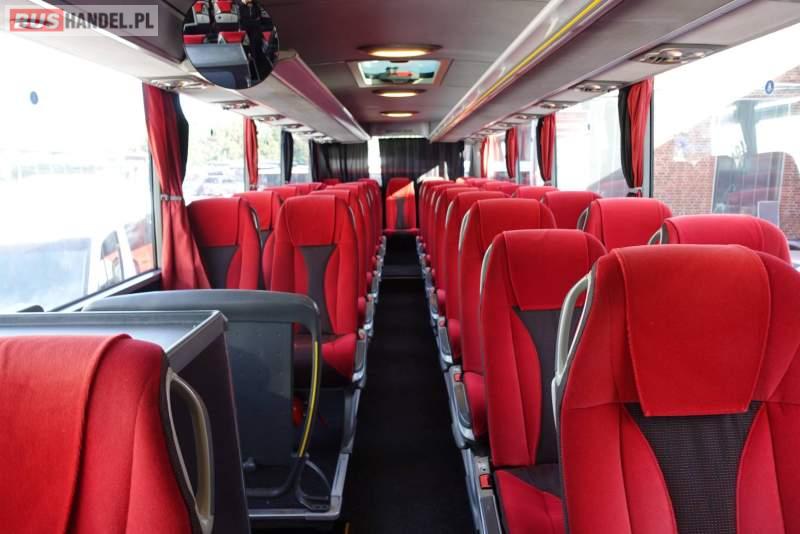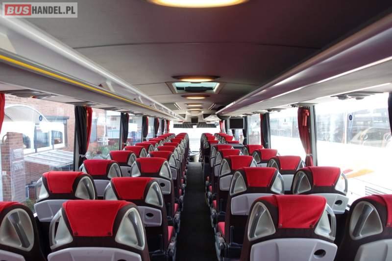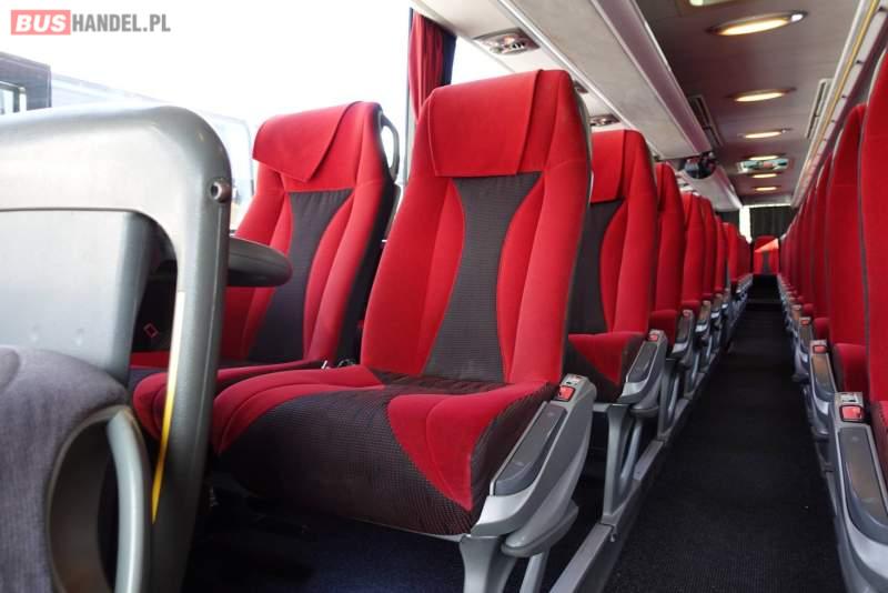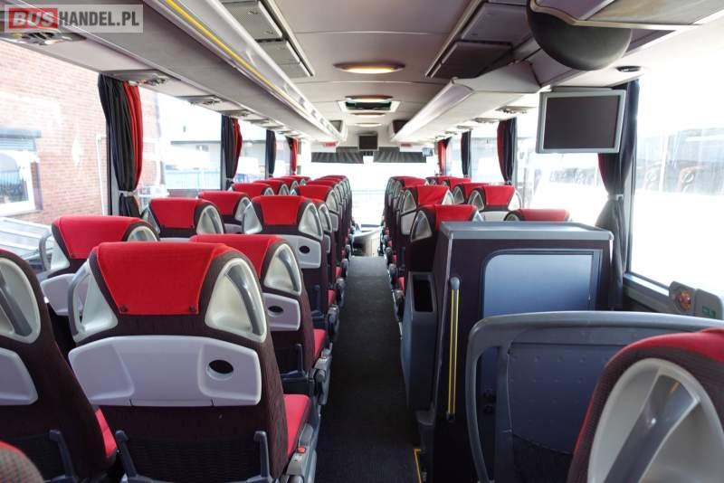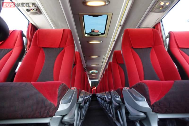 Wyposażenie: klimatyzacja, video, WC, lodówka, kabina sypialna, oświetlenie indywidualne, nawiewy dyszowe, fotele odchylane, podnóżki, siateczki, ABS, ASR, tempomat, retarder, CD, mikrofon, radio, fotele odchylane i rozsuwane, regulacja wysokości nadwozia, centralny zamek, podwójne szyby boczne, wspomaganie kierownicy, elektryczne lusterka, ogrzewanie stacjonarne, DVD, ESP