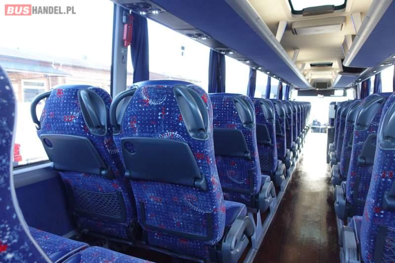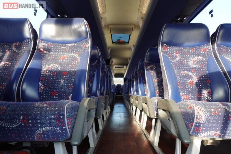 Wyposażenie: video, WC, lodówka, kabina sypialna, fotele odchylane, oświetlenie indywidualne, nawiewy dyszowe, siateczki, ABS, ASR, tempomat, retarder, nawigacja, CD, podnóżki, stoliczki, mikrofon, klimatyzacja, radio, regulacja wysokości nadwozia, centralny zamek, podwójne szyby boczne, wspomaganie kierownicy, elektryczne lusterka, DVD, ogrzewanie stacjonarne, ESP