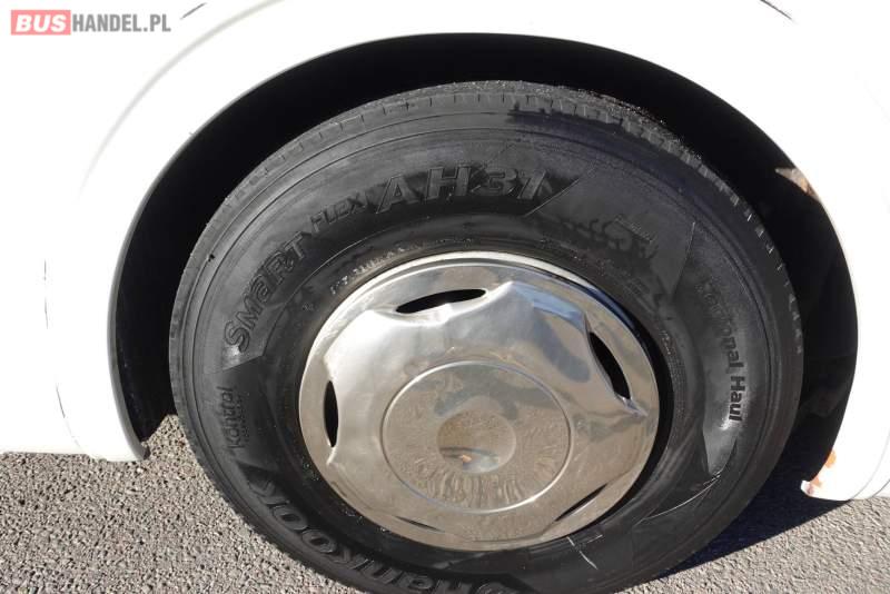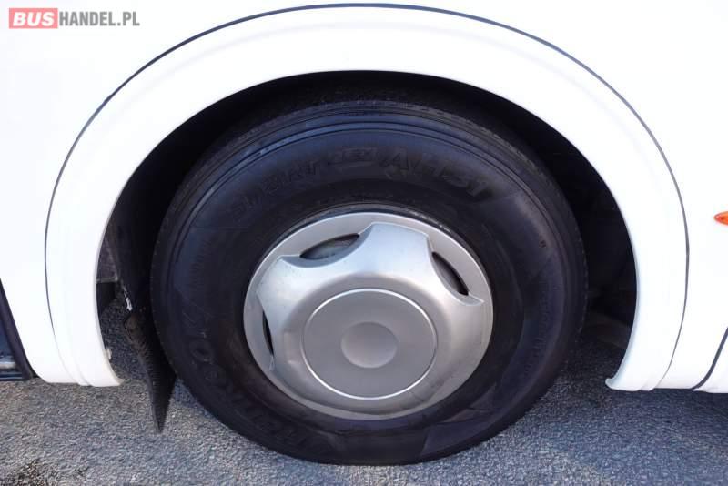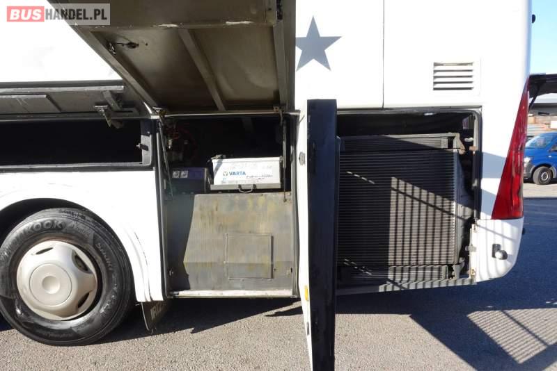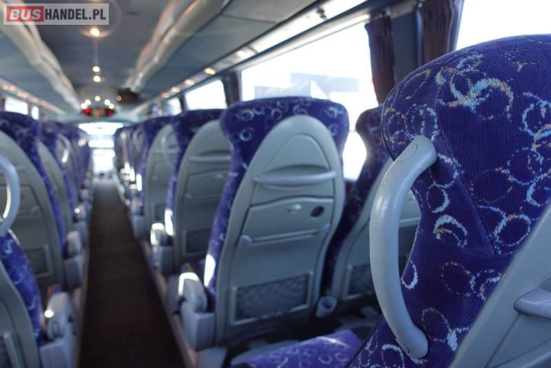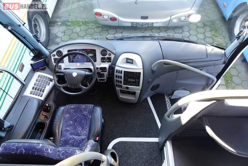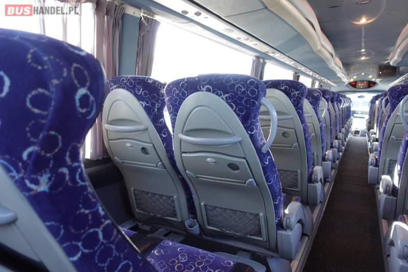 Wyposażenie: video, WC, lodówka, caffebar, kabina sypialna, fotele odchylane, oświetlenie indywidualne, nawiewy dyszowe, siateczki, ABS, ASR, tempomat, retarder, telefon, CD, podnóżki, stoliczki, mikrofon, klimatyzacja, radio, regulacja wysokości nadwozia, centralny zamek, podwójne szyby boczne, wspomaganie kierownicy, elektryczne lusterka, fotele odchylane i rozsuwane, DVD, ogrzewanie stacjonarne, hak holowniczy, ESP