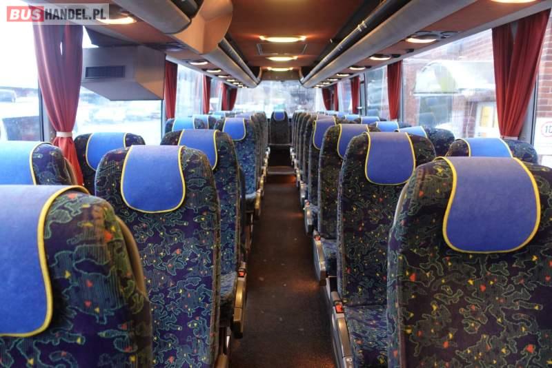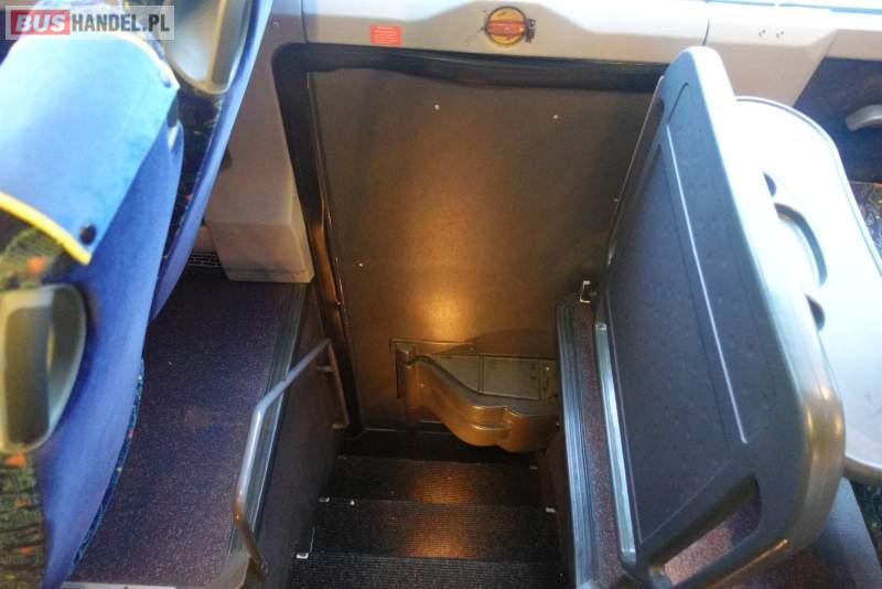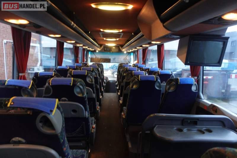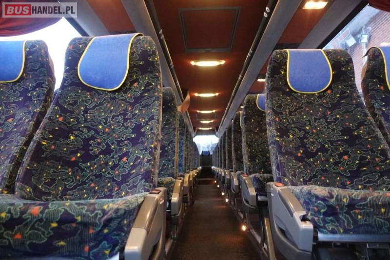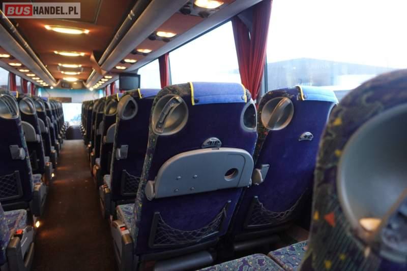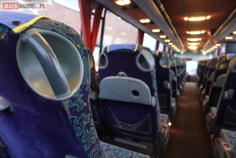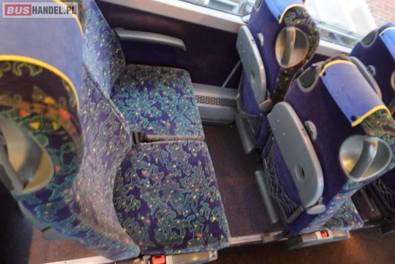 Wyposażenie: klimatyzacja, lodówka, oświetlenie indywidualne, nawiewy dyszowe, fotele odchylane, podnóżki, stoliczki, siateczki, ABS, ASR, retarder, mikrofon, radio, fotele odchylane i rozsuwane, regulacja wysokości nadwozia, centralny zamek, podwójne szyby boczne, wspomaganie kierownicy, elektryczne lusterka, ogrzewanie stacjonarne, DVD, ESP