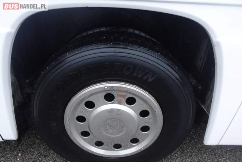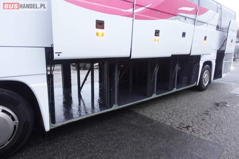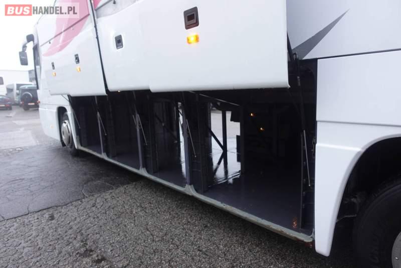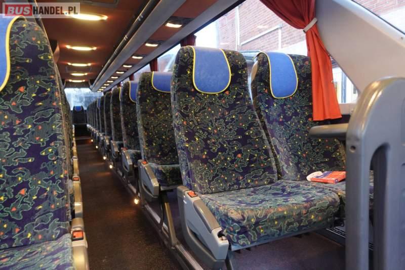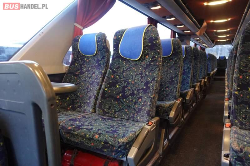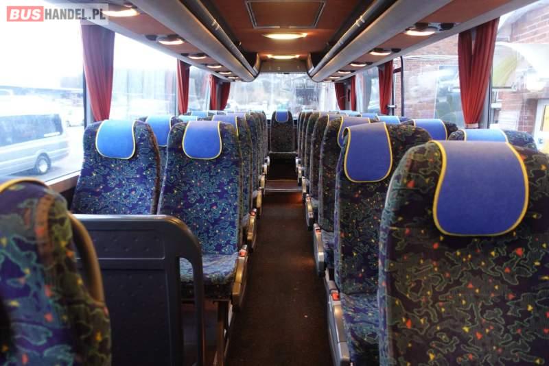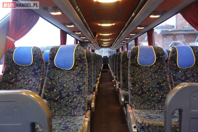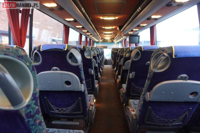 Wyposażenie: klimatyzacja, lodówka, oświetlenie indywidualne, nawiewy dyszowe, fotele odchylane, podnóżki, stoliczki, siateczki, ABS, ASR, retarder, mikrofon, radio, fotele odchylane i rozsuwane, regulacja wysokości nadwozia, centralny zamek, podwójne szyby boczne, wspomaganie kierownicy, elektryczne lusterka, ogrzewanie stacjonarne, DVD, ESP