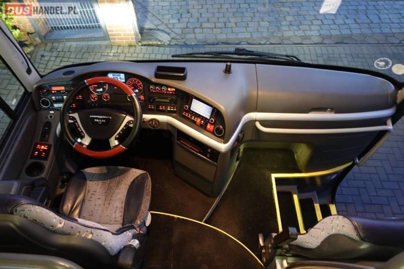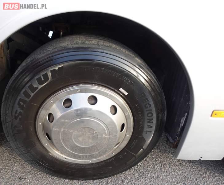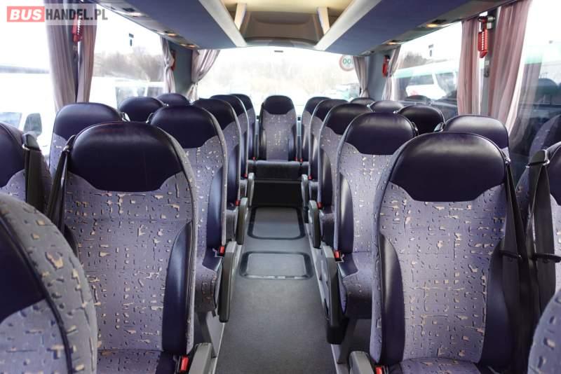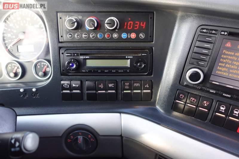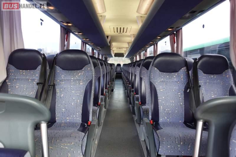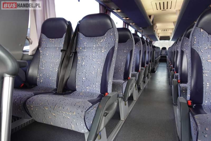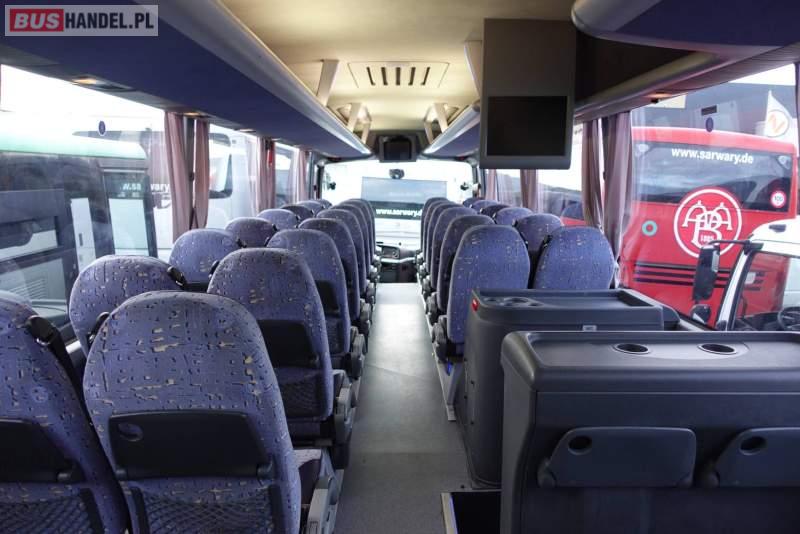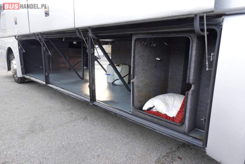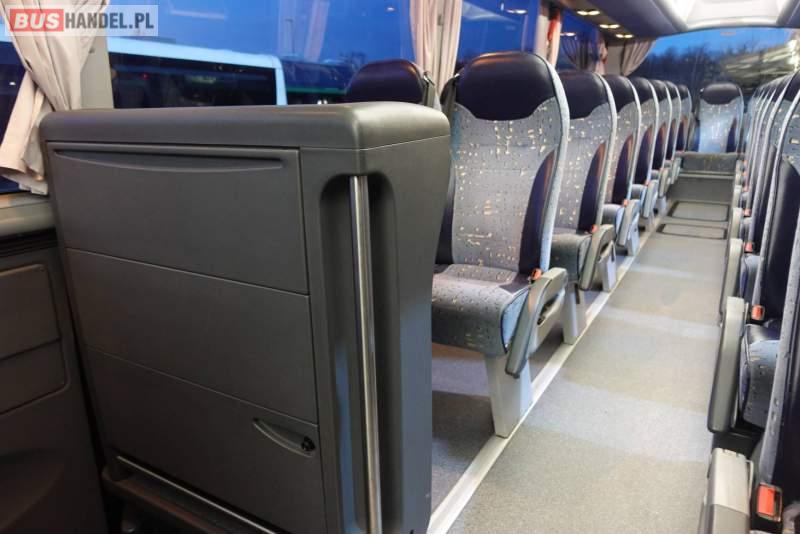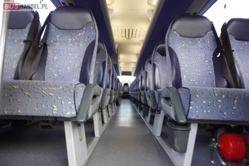 Wyposażenie: video, WC, lodówka, caffebar, kabina sypialna, fotele odchylane, oświetlenie indywidualne, nawiewy dyszowe, siateczki, ABS, ASR, tempomat, retarder, nawigacja, CD, podnóżki, stoliczki, mikrofon, klimatyzacja, regulacja wysokości nadwozia, centralny zamek, podwójne szyby boczne, wspomaganie kierownicy, elektryczne lusterka, fotele odchylane i rozsuwane, DVD, ogrzewanie stacjonarne, ESP