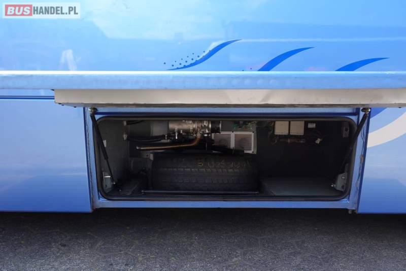 Wyposażenie: video, fotele odchylane, oświetlenie indywidualne, nawiewy dyszowe, siateczki, ABS, ASR, tempomat, retarder, CD, mikrofon, klimatyzacja, radio, regulacja wysokości nadwozia, centralny zamek, podwójne szyby boczne, wspomaganie kierownicy, elektryczne lusterka, fotele odchylane i rozsuwane, DVD, ogrzewanie stacjonarne, ESP