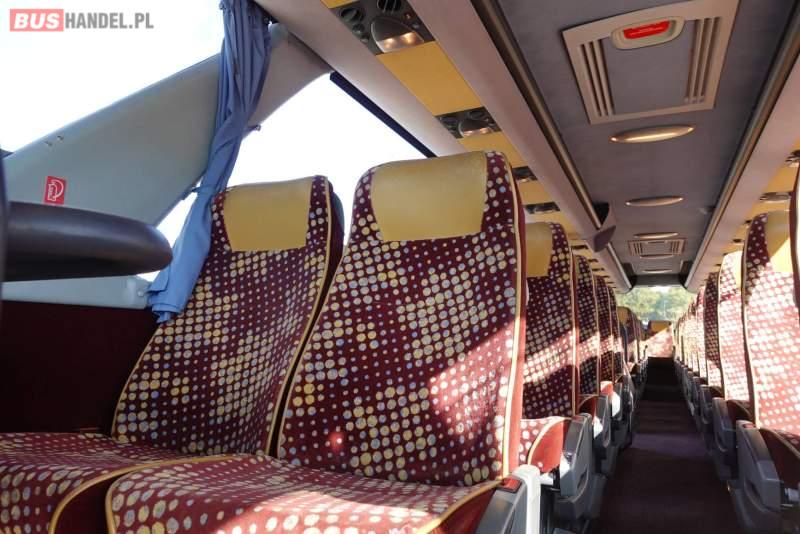 Wyposażenie: klimatyzacja, video, WC, lodówka, kabina sypialna, oświetlenie indywidualne, nawiewy dyszowe, fotele odchylane, podnóżki, stoliczki, siateczki, ABS, ASR, tempomat, retarder, CD, mikrofon, radio, fotele odchylane i rozsuwane, regulacja wysokości nadwozia, centralny zamek, podwójne szyby boczne, wspomaganie kierownicy, elektryczne lusterka, ogrzewanie stacjonarne, DVD, ESP