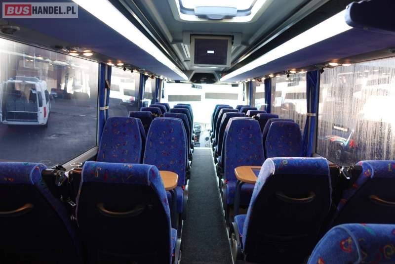 Wyposażenie: video, WC, fotele odchylane, oświetlenie indywidualne, nawiewy dyszowe, siateczki, ABS, ASR, retarder, CD, podnóżki, stoliczki, klimatyzacja, regulacja wysokości nadwozia, centralny zamek, podwójne szyby boczne, wspomaganie kierownicy, elektryczne lusterka, fotele odchylane i rozsuwane, DVD, ogrzewanie stacjonarne, ESP