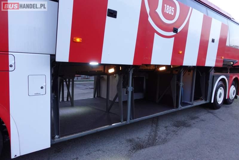 Wyposażenie: klimatyzacja, video, WC, lodówka, caffebar, kabina sypialna, oświetlenie indywidualne, nawiewy dyszowe, fotele odchylane, podnóżki, stoliczki, siateczki, ABS, ASR, tempomat, retarder, CD, mikrofon, fotele odchylane i rozsuwane, regulacja wysokości nadwozia, centralny zamek, podwójne szyby boczne, wspomaganie kierownicy, elektryczne lusterka, ogrzewanie stacjonarne, DVD