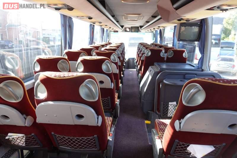 Wyposażenie: klimatyzacja, video, WC, lodówka, kabina sypialna, oświetlenie indywidualne, nawiewy dyszowe, fotele odchylane, podnóżki, stoliczki, siateczki, ABS, ASR, tempomat, retarder, CD, mikrofon, radio, fotele odchylane i rozsuwane, regulacja wysokości nadwozia, centralny zamek, podwójne szyby boczne, wspomaganie kierownicy, elektryczne lusterka, ogrzewanie stacjonarne, DVD, ESP