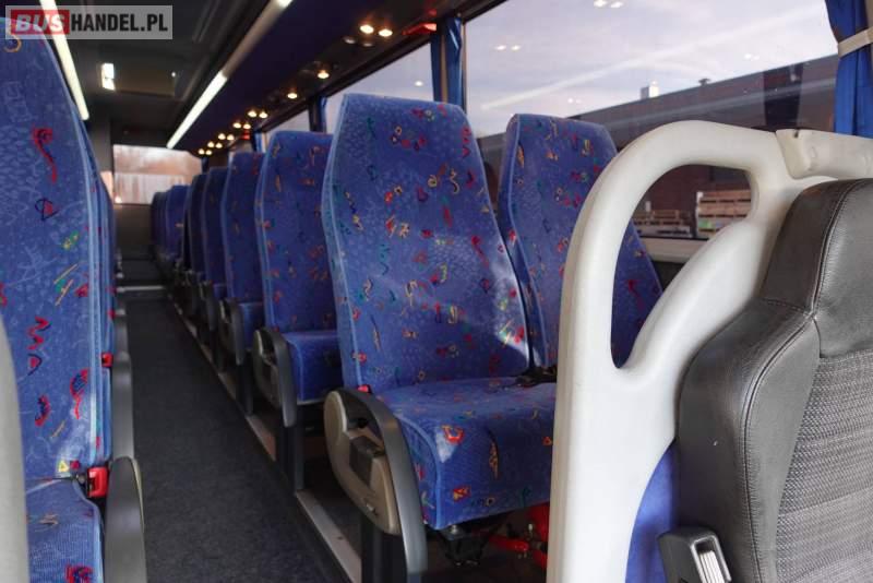 Wyposażenie: video, WC, fotele odchylane, oświetlenie indywidualne, nawiewy dyszowe, siateczki, ABS, ASR, retarder, CD, podnóżki, stoliczki, klimatyzacja, regulacja wysokości nadwozia, centralny zamek, podwójne szyby boczne, wspomaganie kierownicy, elektryczne lusterka, fotele odchylane i rozsuwane, DVD, ogrzewanie stacjonarne, ESP