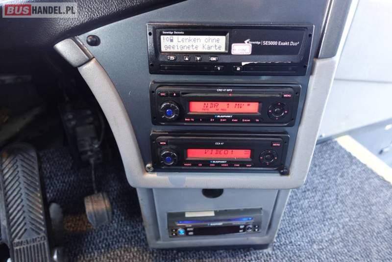Wyposażenie: video, WC, fotele odchylane, oświetlenie indywidualne, nawiewy dyszowe, siateczki, ABS, ASR, retarder, CD, podnóżki, stoliczki, klimatyzacja, regulacja wysokości nadwozia, centralny zamek, podwójne szyby boczne, wspomaganie kierownicy, elektryczne lusterka, fotele odchylane i rozsuwane, DVD, ogrzewanie stacjonarne, ESP