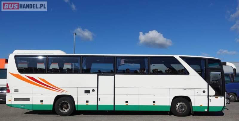 Wyposażenie: klimatyzacja, video, WC, lodówka, kabina sypialna, oświetlenie indywidualne, nawiewy dyszowe, fotele odchylane, podnóżki, stoliczki, siateczki, ABS, ASR, tempomat, retarder, CD, mikrofon, radio, fotele odchylane i rozsuwane, regulacja wysokości nadwozia, centralny zamek, podwójne szyby boczne, wspomaganie kierownicy, elektryczne lusterka, ogrzewanie stacjonarne, DVD, ESP