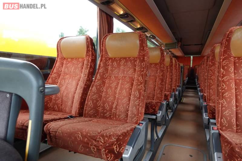 Wyposażenie: video, WC, lodówka, caffebar, kabina sypialna, fotele odchylane, oświetlenie indywidualne, nawiewy dyszowe, ABS, ASR, tempomat, retarder, CD, podnóżki, mikrofon, klimatyzacja, radio, centralny zamek, podwójne szyby boczne, wspomaganie kierownicy, elektryczne lusterka, fotele odchylane i rozsuwane, DVD, ogrzewanie stacjonarne, ESP
